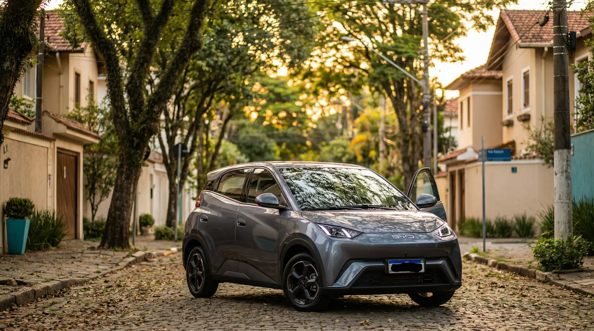 BYD Dolphin Mini Preto — silencioso, confortável, climatizado.